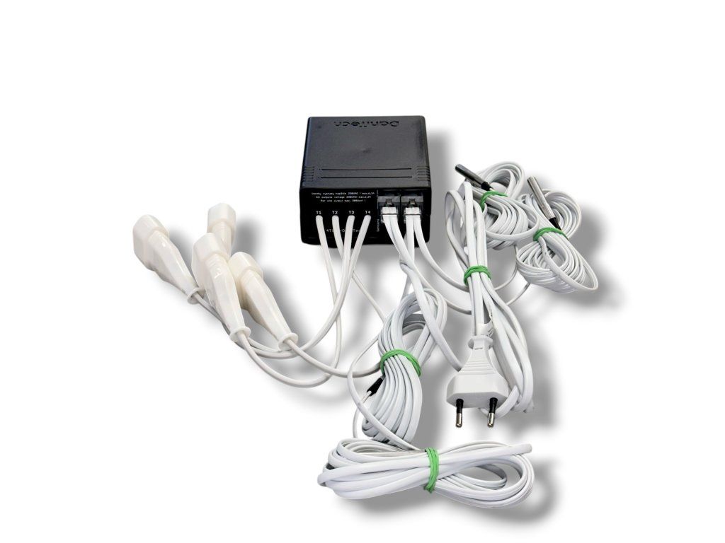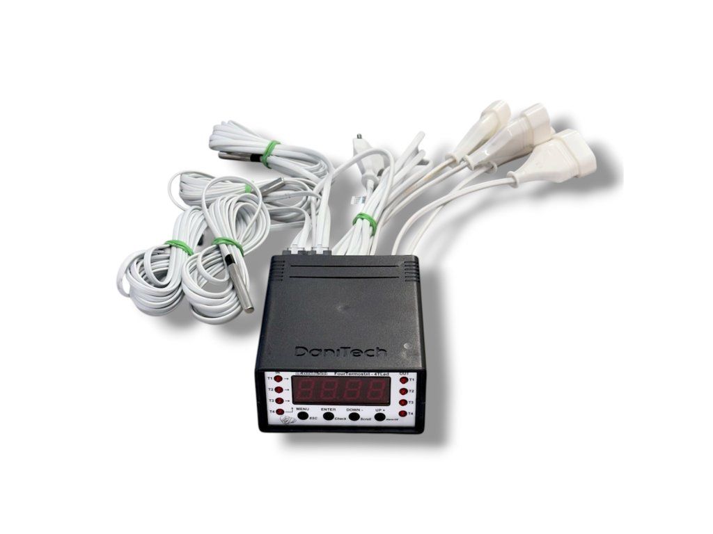 DaniTech 4T LED umožňuje měřit a regulovat teplotu na čtyřech různých místech. Každý výstup i čidlo je samostatně nastavitelné.