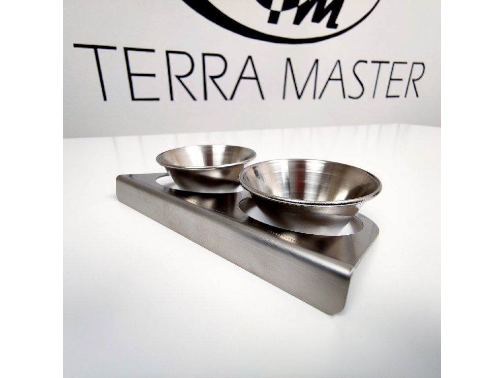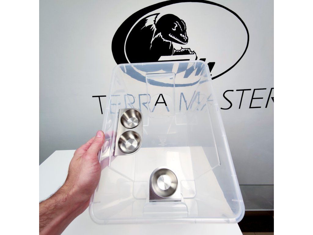 Tyto nerezové konzole umožňují terarijním zvířatům pohodlné a nerušené konzumování ovocných kaší nebo vody, jsou také vhodné pro servírování drobného hmyzu nebo minerálních doplňků.