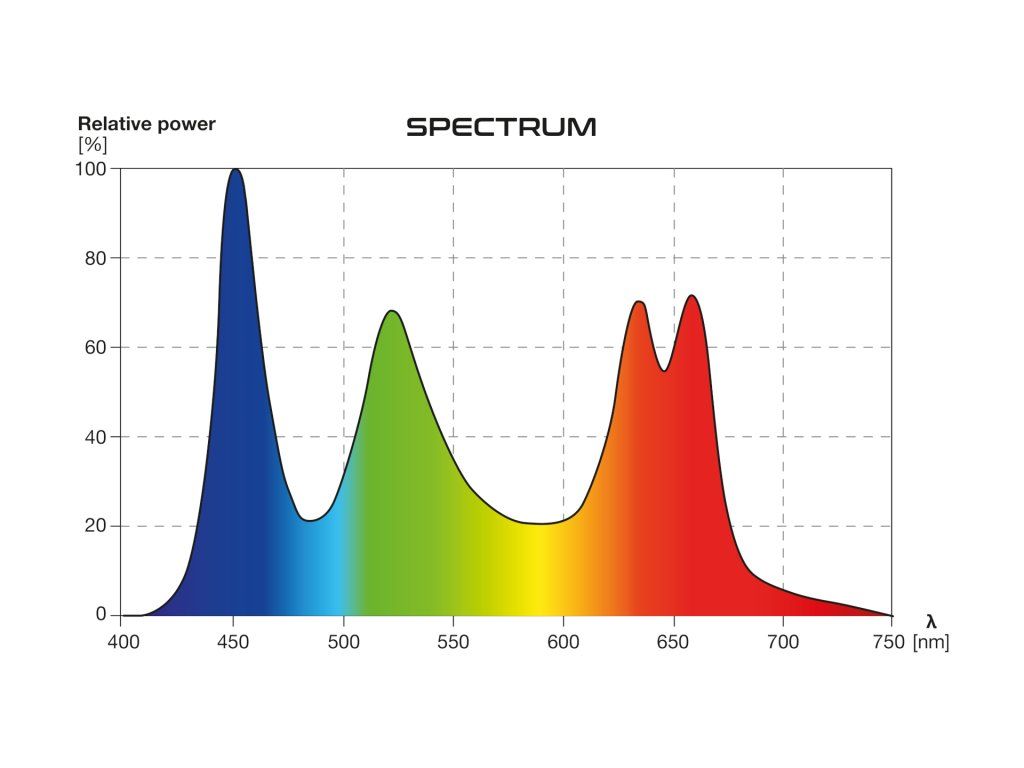 Lampy SKYLIGHT MID-30 INTENSE jsou navrženy zcela odlišně od ostatních modelů pro terária a vivária. Většina dostupných modelů se zaměřuje na vysoký jas. U mírně pokročilejších modelů, jako je SKYLIGHT PRO, je jas vyvážen vysokým indexem podání barev (CRI). U MID-30 INTENSE byly výše uvedené parametry zvoleny tak, aby bylo dosaženo jediného cíle – živých a intenzivních barev. Velké množství červeného spektra stimuluje fytochromy rostlin k produkci ochranných barevných pigmentů a spektrum RGB umožňuje vidět intenzivnější a sytější barvy. Navíc byly minimalizovány boční odlesky, aby byl pohled na vaše vivárium ještě příjemnější!